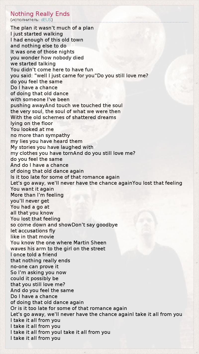 А как ты думаешь, о чем песня "Nothing Really Ends" ?