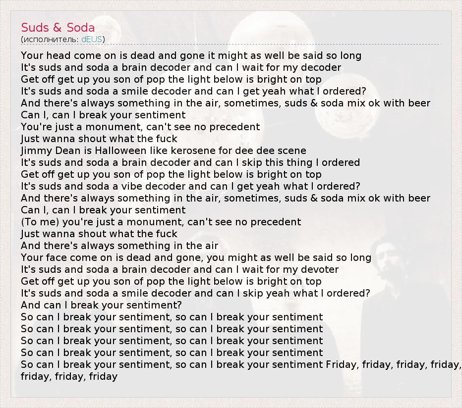 А как ты думаешь, о чем песня "Suds & Soda" ?