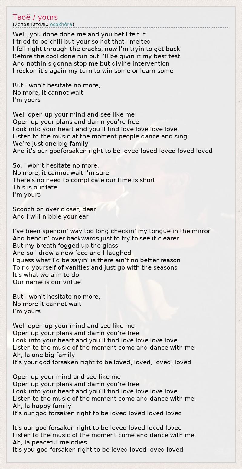 А как ты думаешь, о чем песня "Твоё / yours" ?