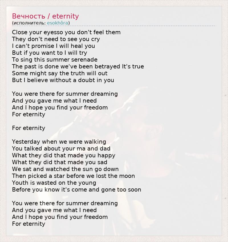 А как ты думаешь, о чем песня "Вечность / eternity" ?
