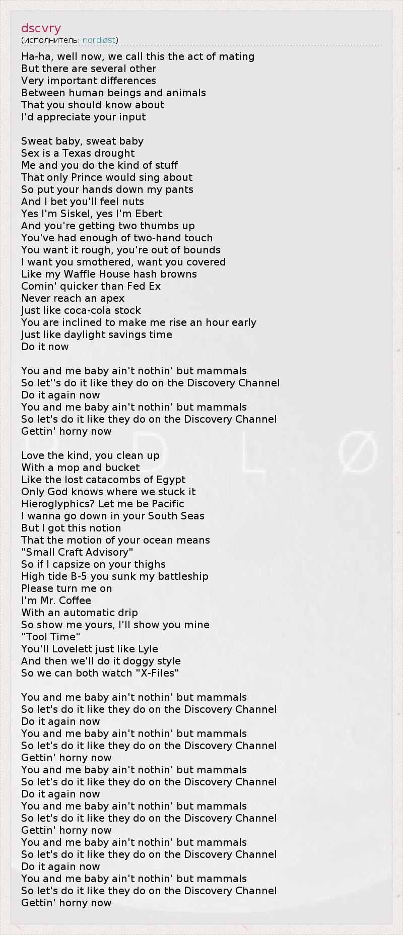 You and me baby ain't nothin' but mammals