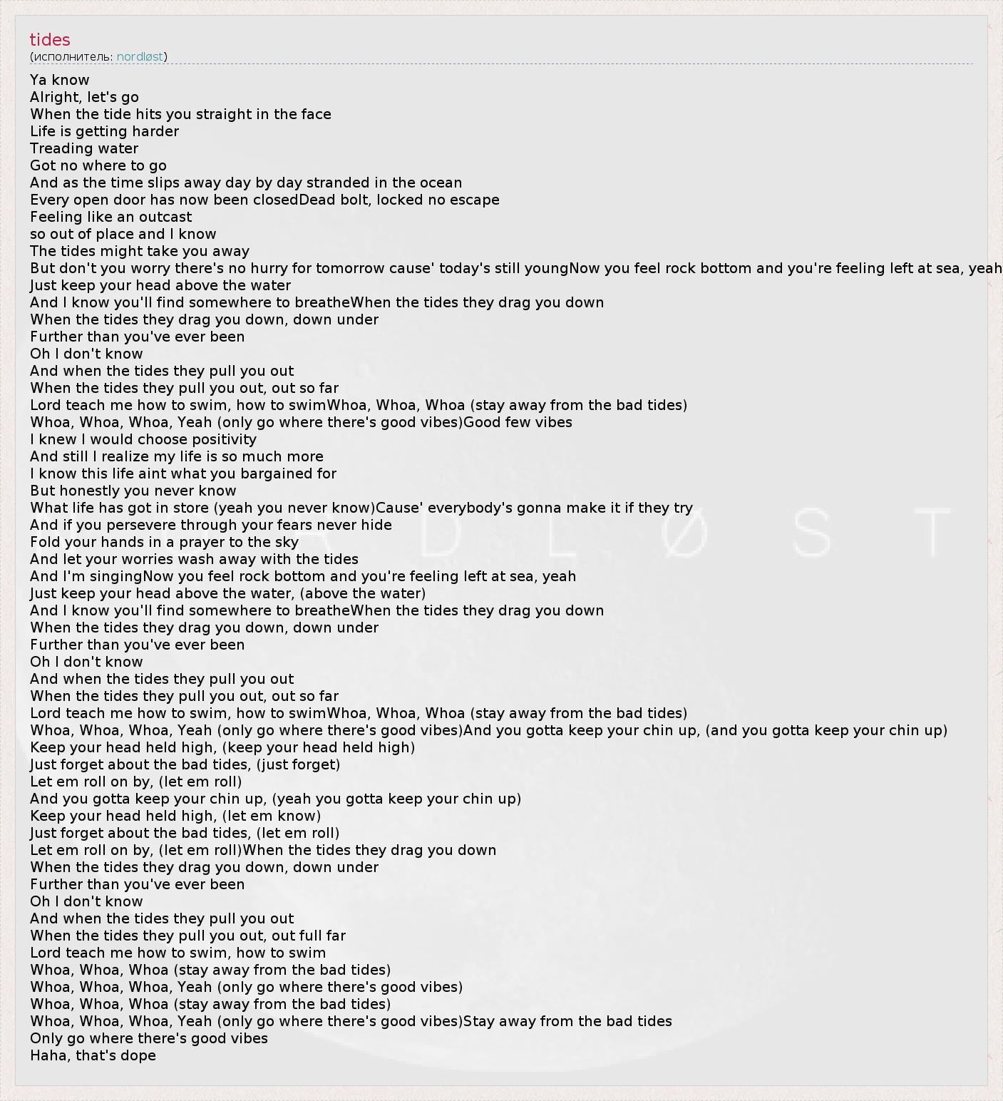 А как ты думаешь, о чем песня "tides" ?