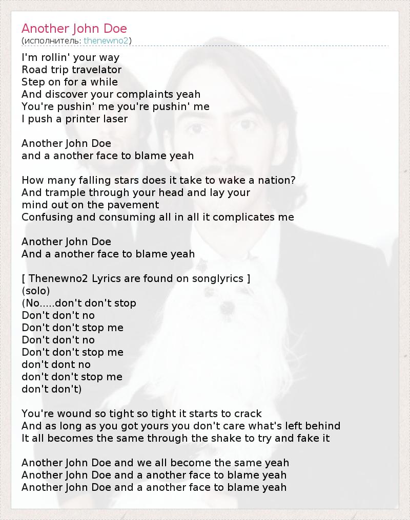 А как ты думаешь, о чем песня "Another John Doe" ?