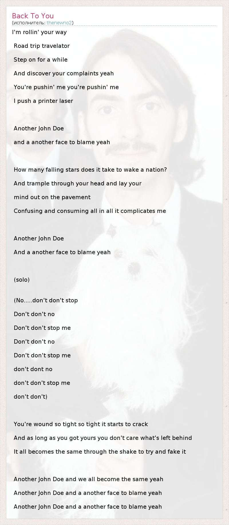 Another John Doe and a another face to blame yeah