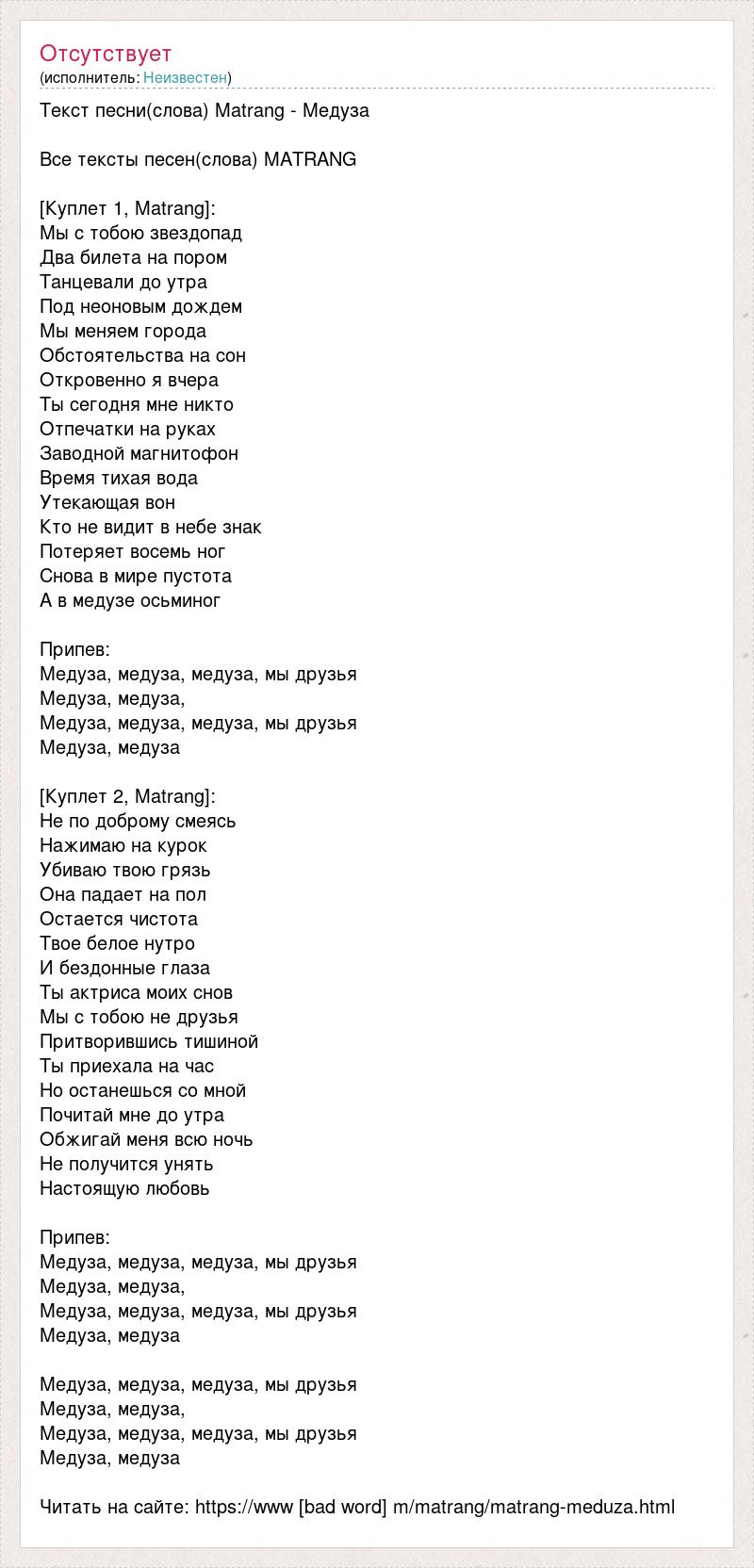 Текст песни(слова) Matrang - Медуза